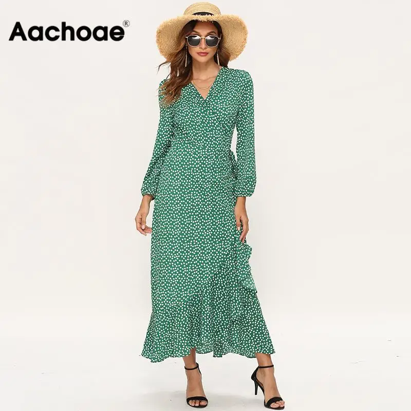 BEST 2020 Women Long Bohemian Dresses Sexy V Neck Split Floral Print Maxi Beach Dress Long Sleeve Ruffle