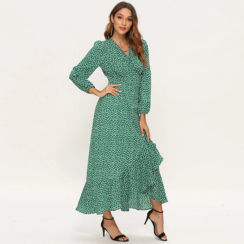 Hot Sale 2020 Women Long Bohemian Dresses Sexy V Neck Split Floral Print Maxi Beach Dress Long Sleeve Ruffle