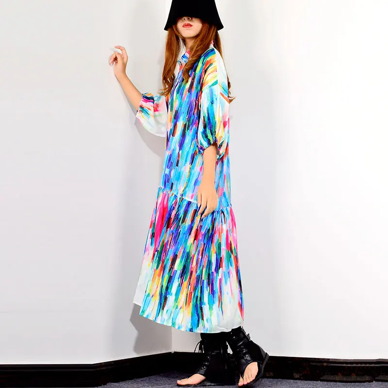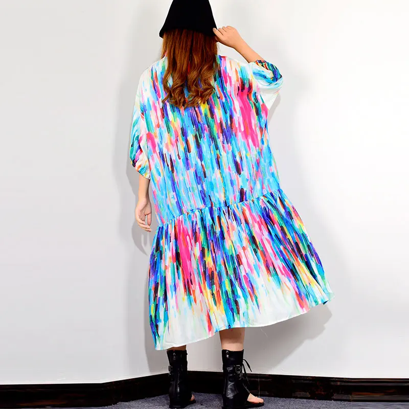 XITAO Print Multi Color Striped Draped Hem Midi Length Dress Women 2019 Casual Plus Size Bating Sle
